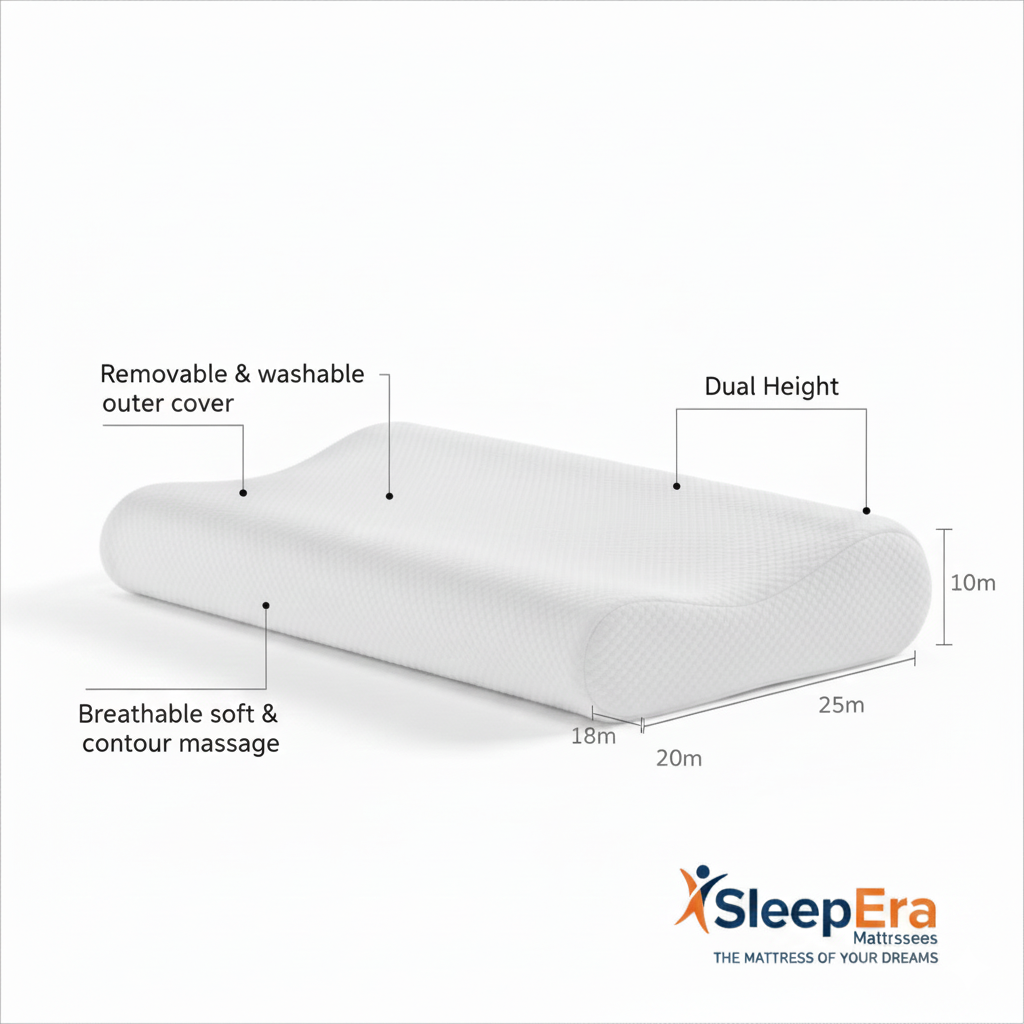 Neck Pro by Duroflex is a contoured orthopedic support pillow scientifically engineered for the perfect neck contouring and exceptional pressure relief. Enabled with Cool Gel Technology and encased in an antimicrobial cover, the pillow helps maintain a cool and fresh sleep climate. It is strategically contoured to enhance neck support and lend superior relaxation. Neck Pro is highly recommended for people suffering from neck pain for a safe and healthy sleep.